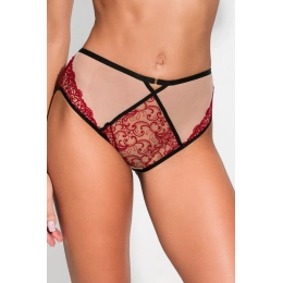 Boky jsou zdobeny propracovanou výšivkou, která zdůrazňuje rafinovaný styl, zatímco zadní část je vyrobena celá z béžové síťoviny, což zajišťuje pohodlí a decentní střih.