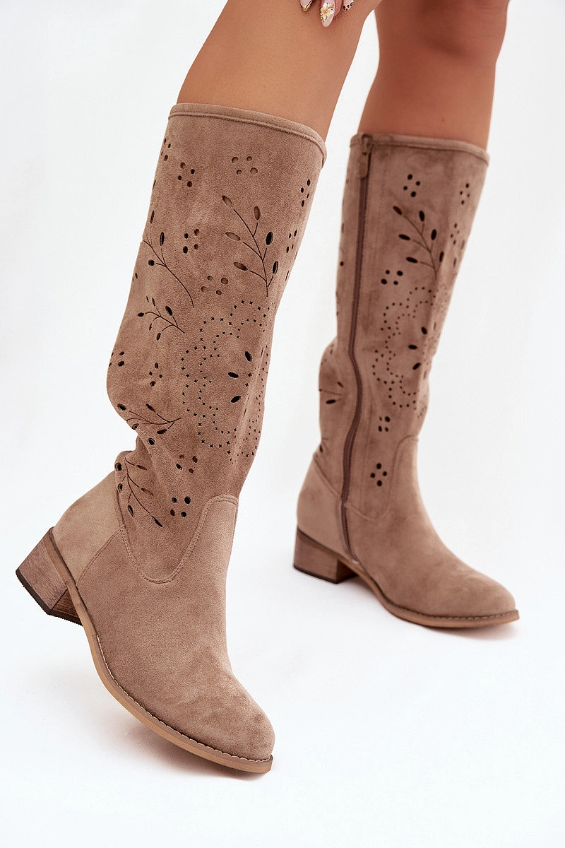 Jemné krajkové výřezy dodávají celku lehkost a módní charakter, díky čemuž jsou kozačky skvělým stylovým prvkem mnoha ženských outfitů.