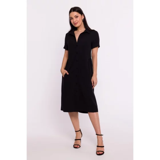 100% polyester PODROBNOSTI O PRODUKTU: tkaná látka košilové šaty šaty zapínání vpředu na knoflíky a límeček krátký rukáv přední kapsy ve švu bez podšívky délka pod kolena naše modelka je 164 cm vysoká a nosí velikost S navrženo a vyrobeno v Polsku