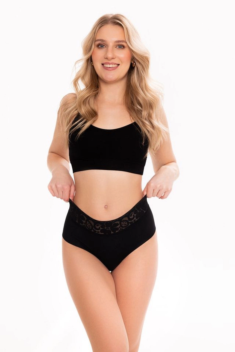Vysoký pas decentně tvaruje bříško a zdůrazňuje ženské křivky, čímž zajišťuje celodenní pohodlí.