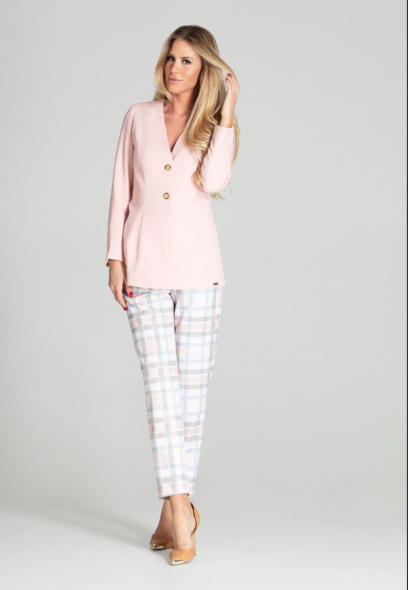 Světle růžový jarní prodloužený kabátek, podšitý. Výstřih do V, bez klop, bez kapes, zapínání na dva knoflíky.100% polyesterBarva: růžováPokyny pro péči: pokyny pro praní: 30 °C prát v pračceKolekce: JaroKategorieFC: BlejzrPohlaví: Ženské