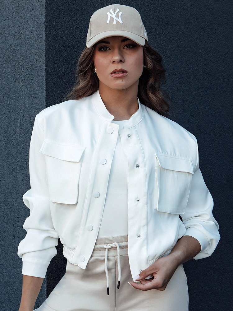 Objevte funkčnost a styl v dámské bomber bundě PRIEV! Zapíná se na patentky a je vybavena praktickými velkými kapsami, které jsou ideální pro uložení nezbytných věcí. Žebrovaný lem zajišťuje dokonalé přizpůsobení a pohodlí, zatímco pohodlné rozepínací manžety umožňují nastavit šířku rukávů. Perfektně se hodí ke každému outfitu!