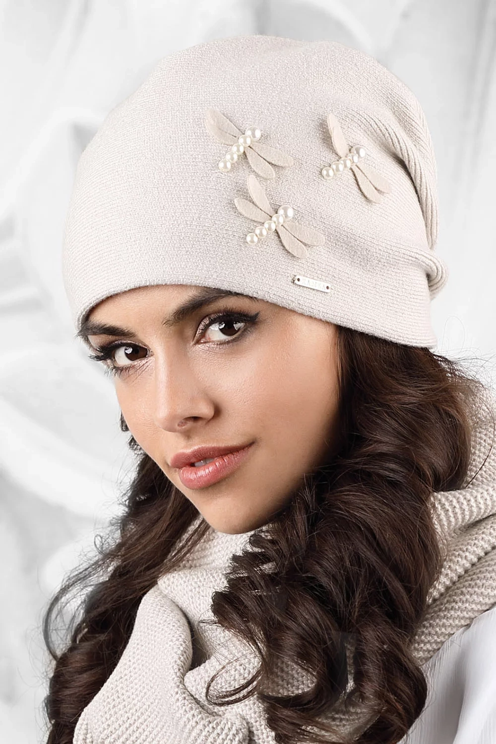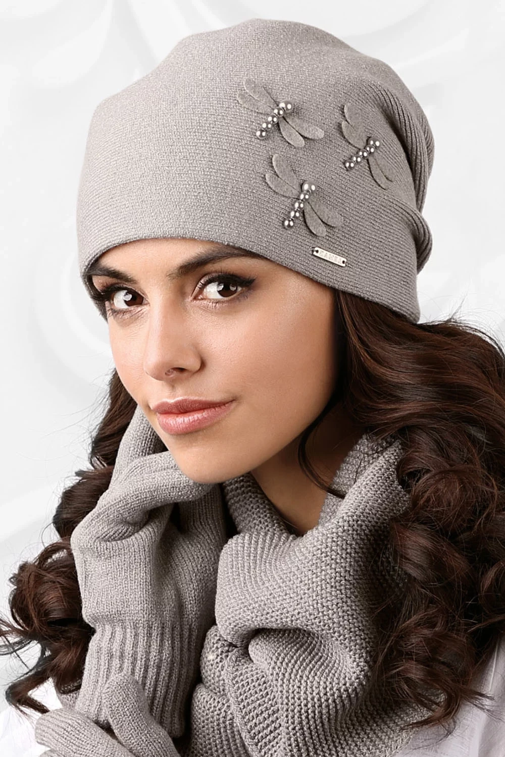 Tato hladká čepice je ideálně vypasovaná. Model je vyrobený z tenčí příze s přídavkem vlny a viskózy. Přední díl modelu zdobí půvabné vážky. Na zadním dílu jsou tři záložky. Čepice se skvěle osvědčí např. na podzim.