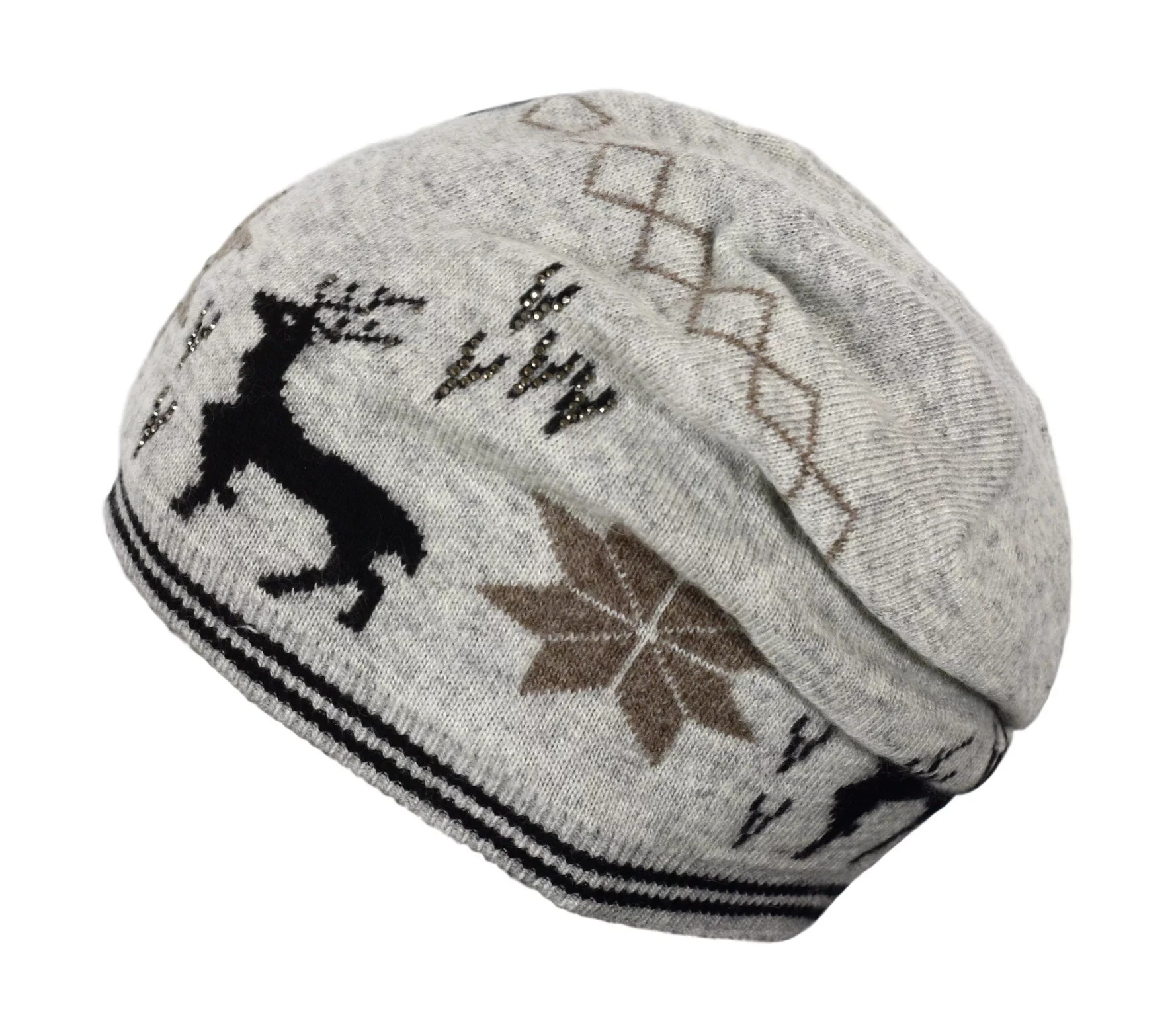 Líbivá zimní dámská čepice, s vyšitým vzorem. Materiál: 64% akryl, 6% angora, 30% vlna.