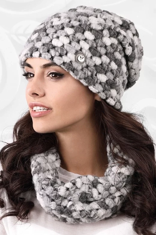 Komplet čepice a šála K.22.261.05 Světle šedý - Kamea