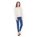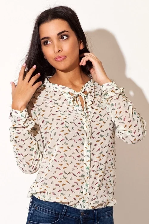 Velmi jemná a tenká halenka K135 KATRUS je k objednání ve třech barvách. Halenka s dlouhým rukávem a vázačkou u krku má potisk ptáčků a pírek.