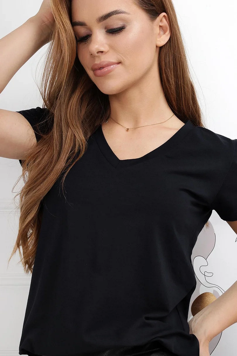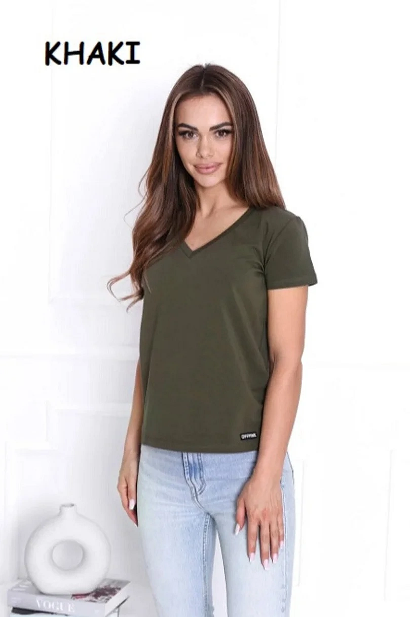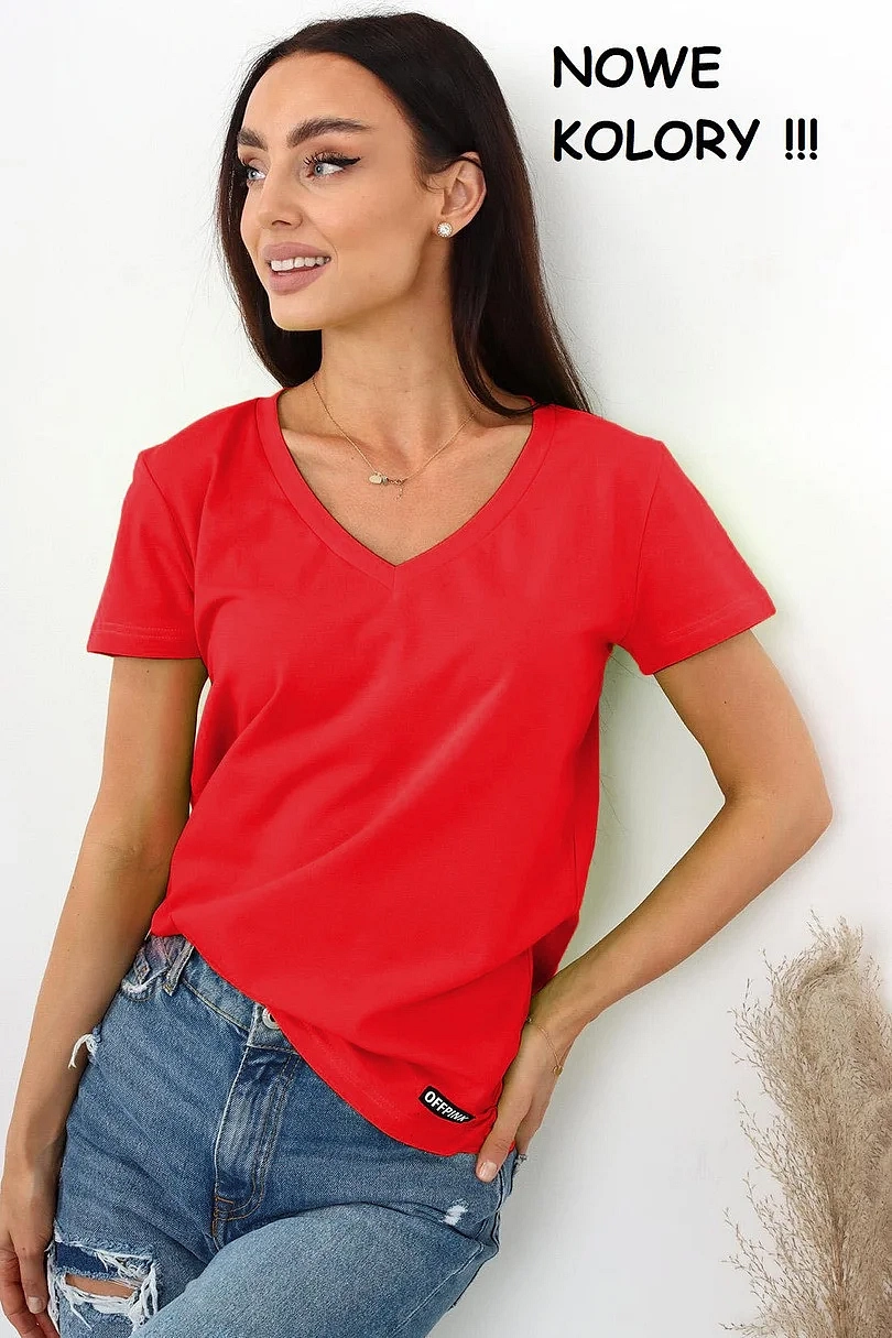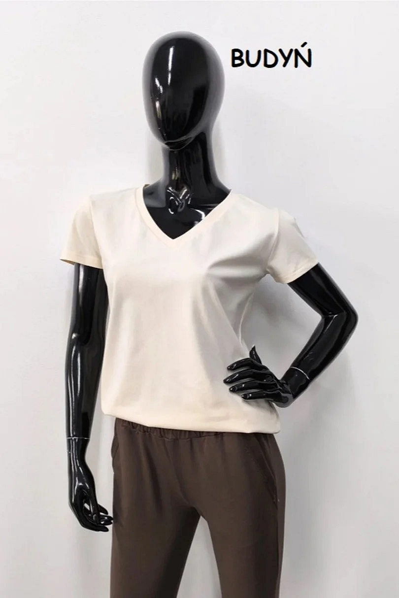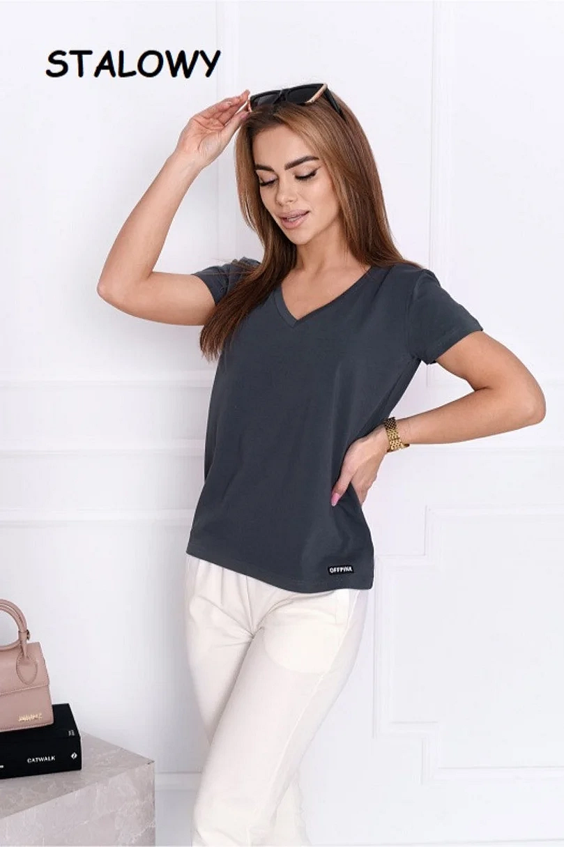 Dámské tričko s krátkým rukávem, výstřih u krku do V. Materiálové složení: 95% Bavlna, 5%Elastan