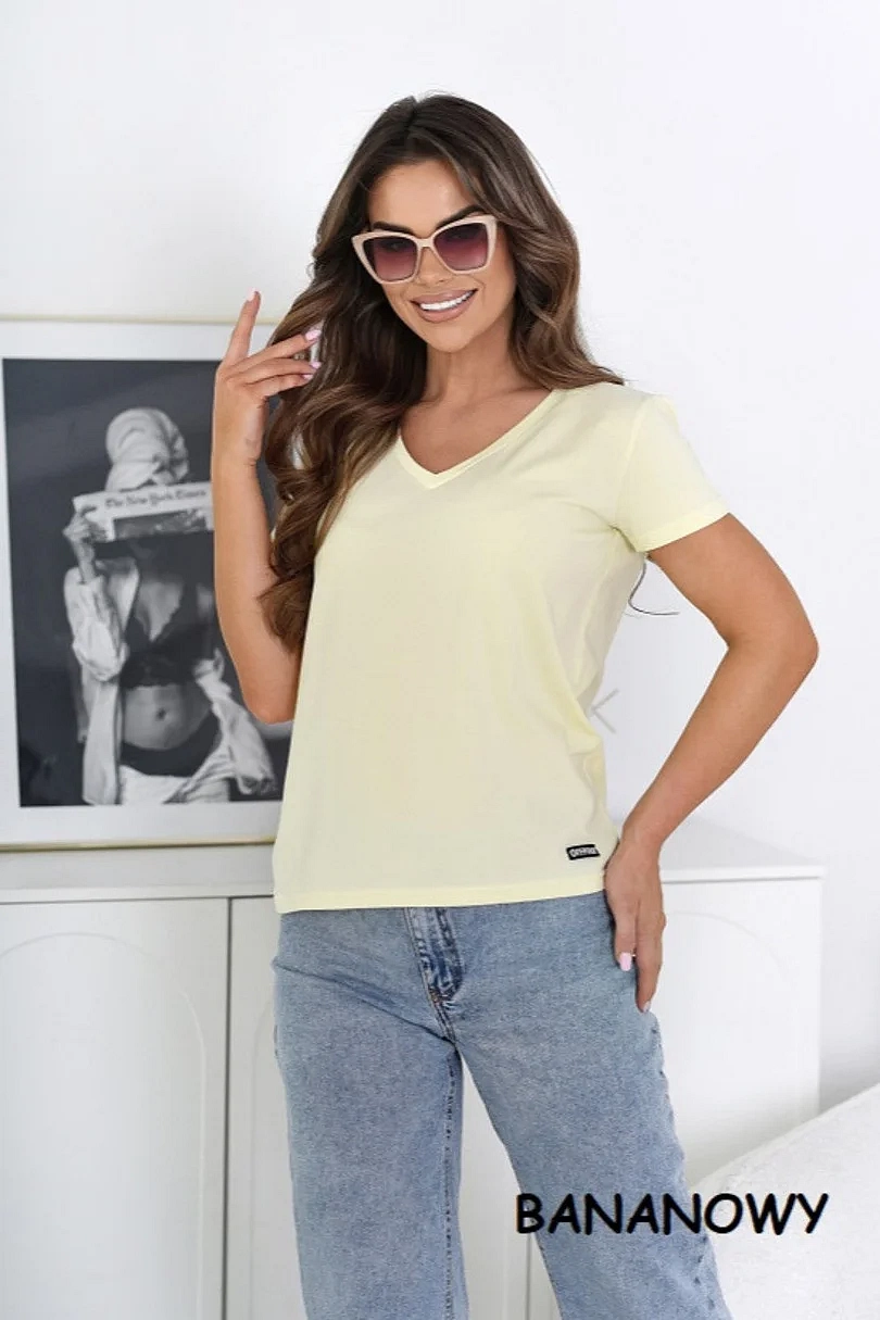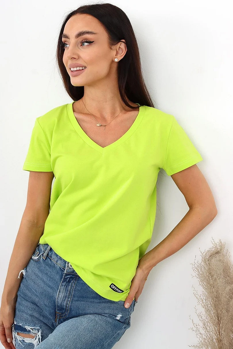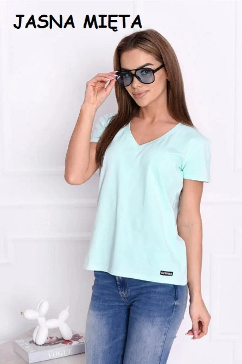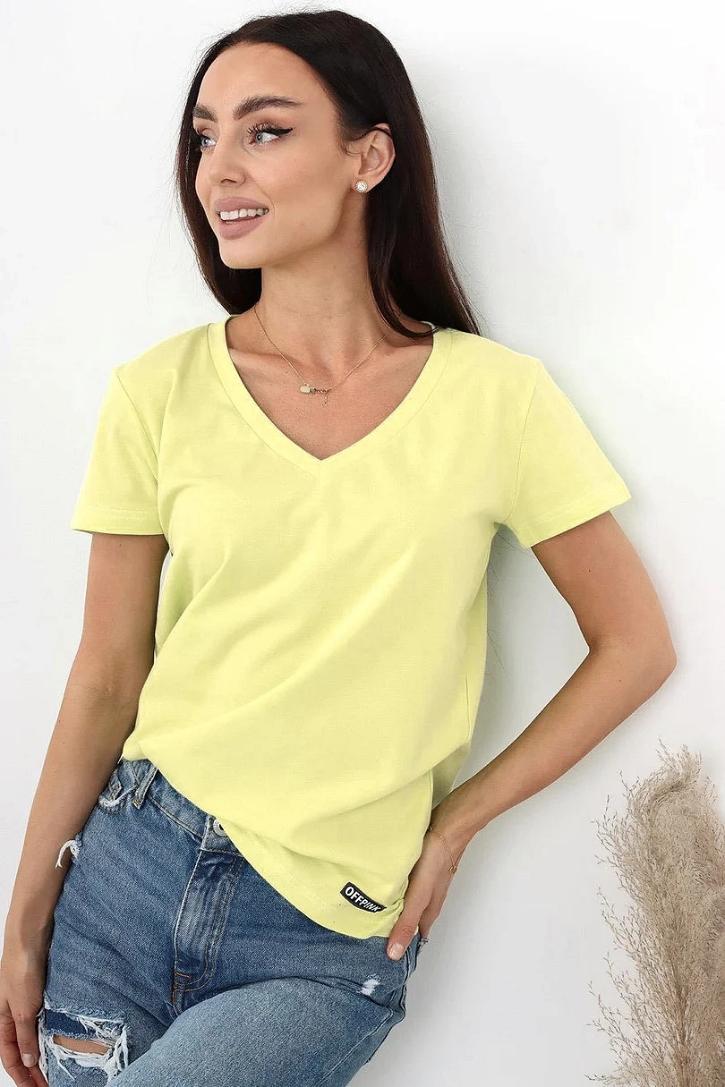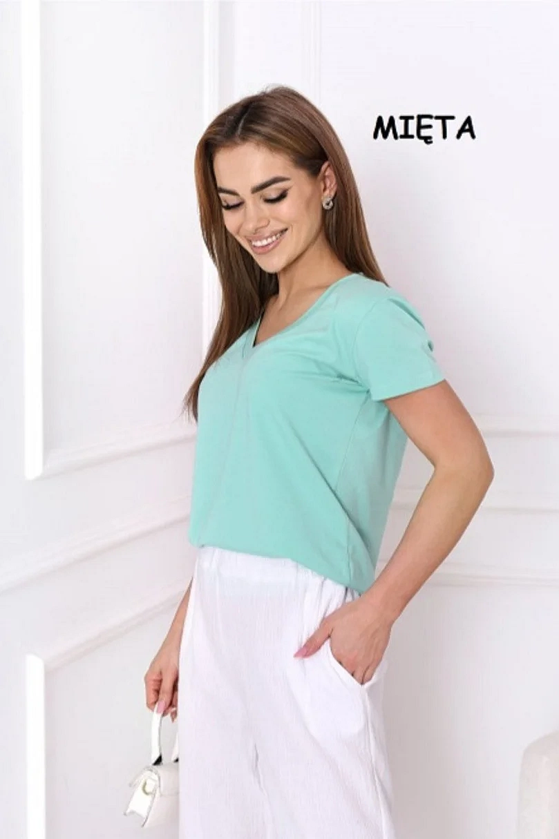 Dámské tričko s krátkým rukávem, výstřih u krku do V. Materiálové složení: 95% Bavlna, 5%Elastan