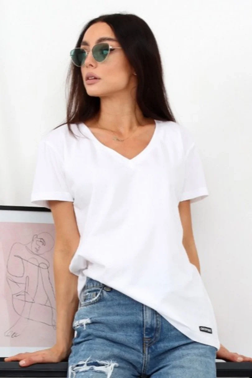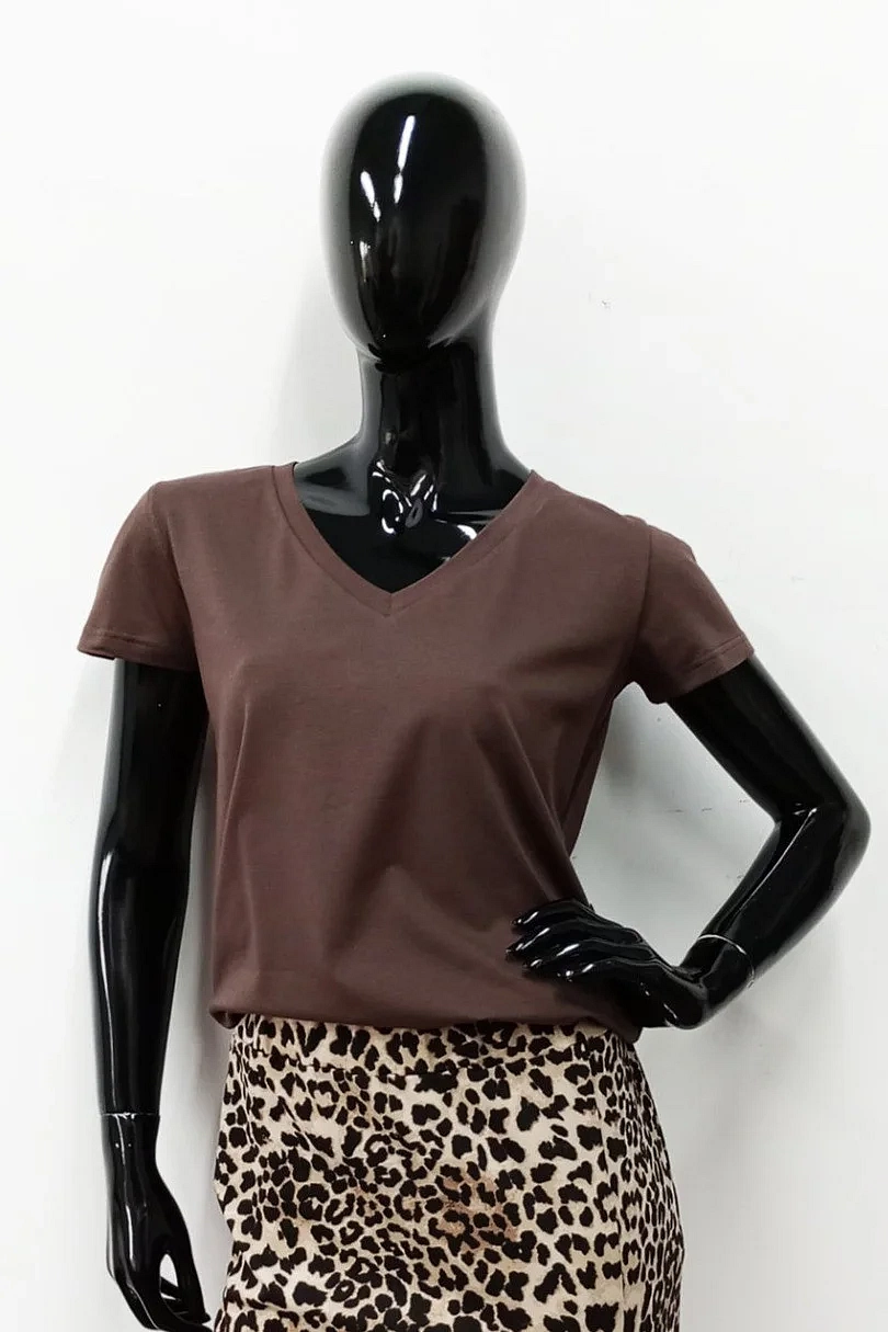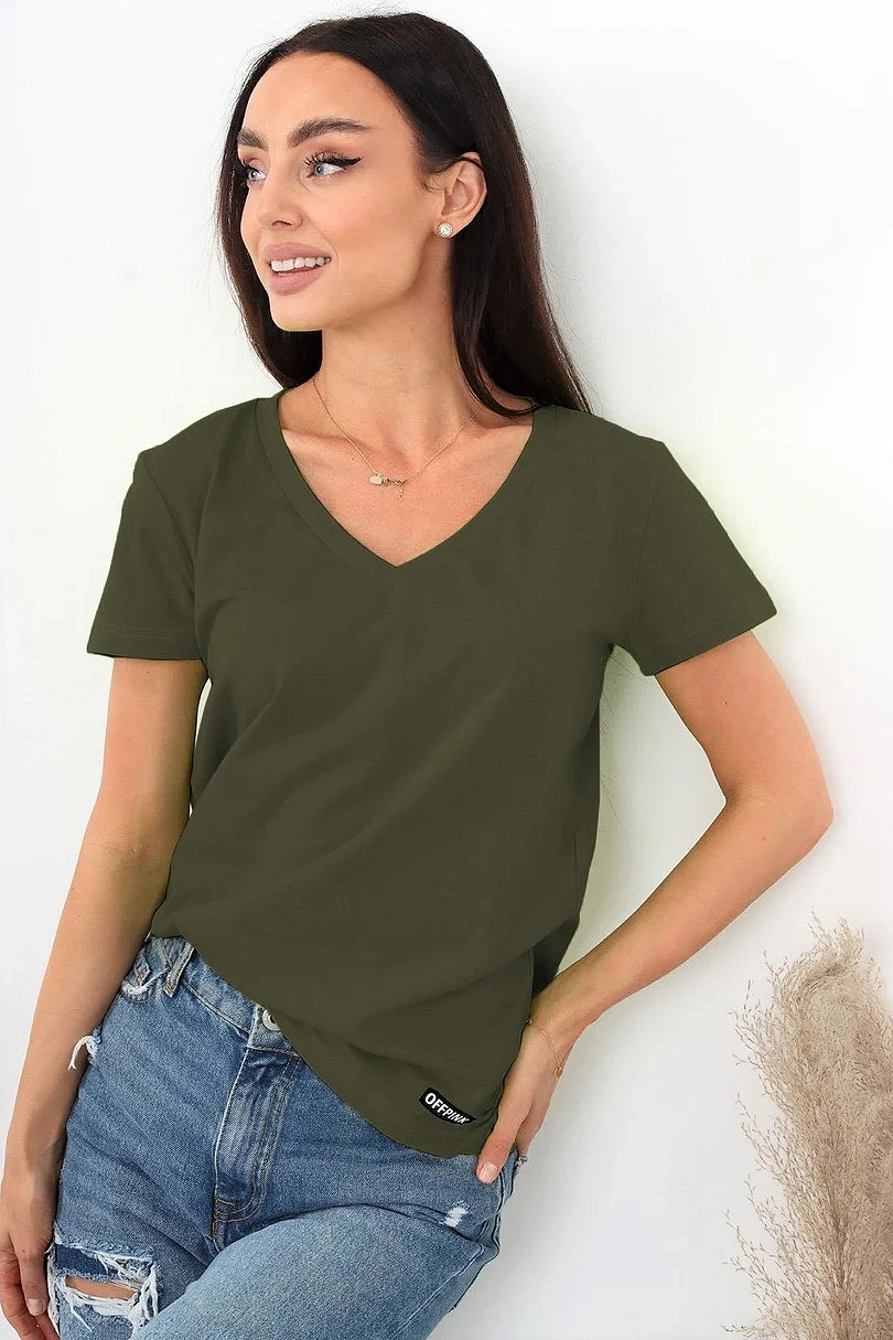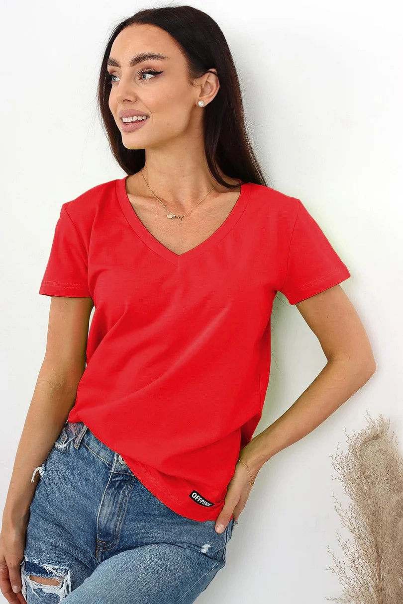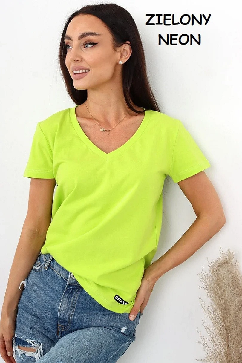 Dámské tričko s krátkým rukávem, výstřih u krku do V. Materiálové složení: 95% Bavlna, 5%Elastan