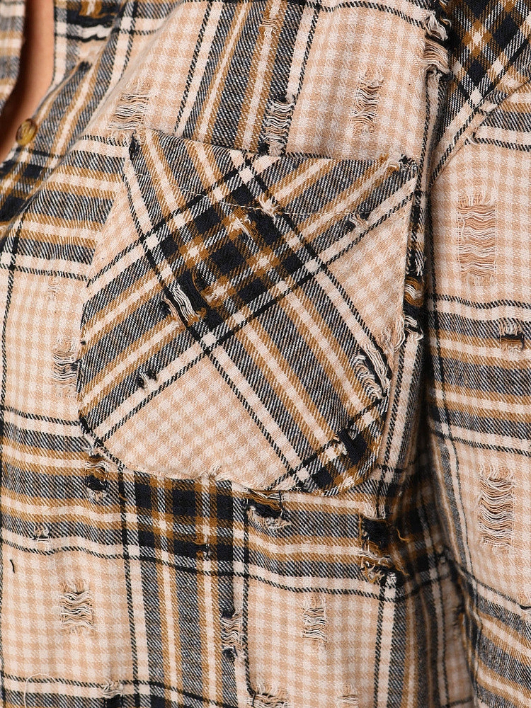 Dobře se kombinuje s džínami, legínami a látkovými kalhotami a nosí se zapnutá nebo rozepnutá jako lehká svrchní vrstva. Třepení dodává vašemu oblečení dekorativní prvek a dodává mu charakter, aniž by narušovalo klasický tvar košile.