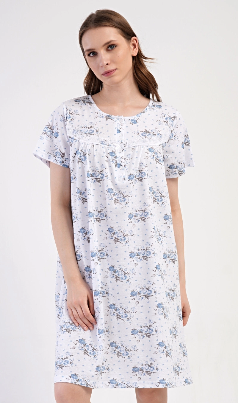 Dvoudílné dámské pyžamo pro pohodlný spánek. Komplet sestává z jednobarevné košilky na ramínka s kulatým výstřihem, který dopňují krátké šortky s potiskem domečků s pohodlnou gumou v pase. Pyžamo je vyrobené z vysoce kvalitní, genetický nemodifikované řecké bavlny, která poskytuje vysoké pohodlí, příjemný pocit na dotek, prodyšnost, pružnost a odolnost.