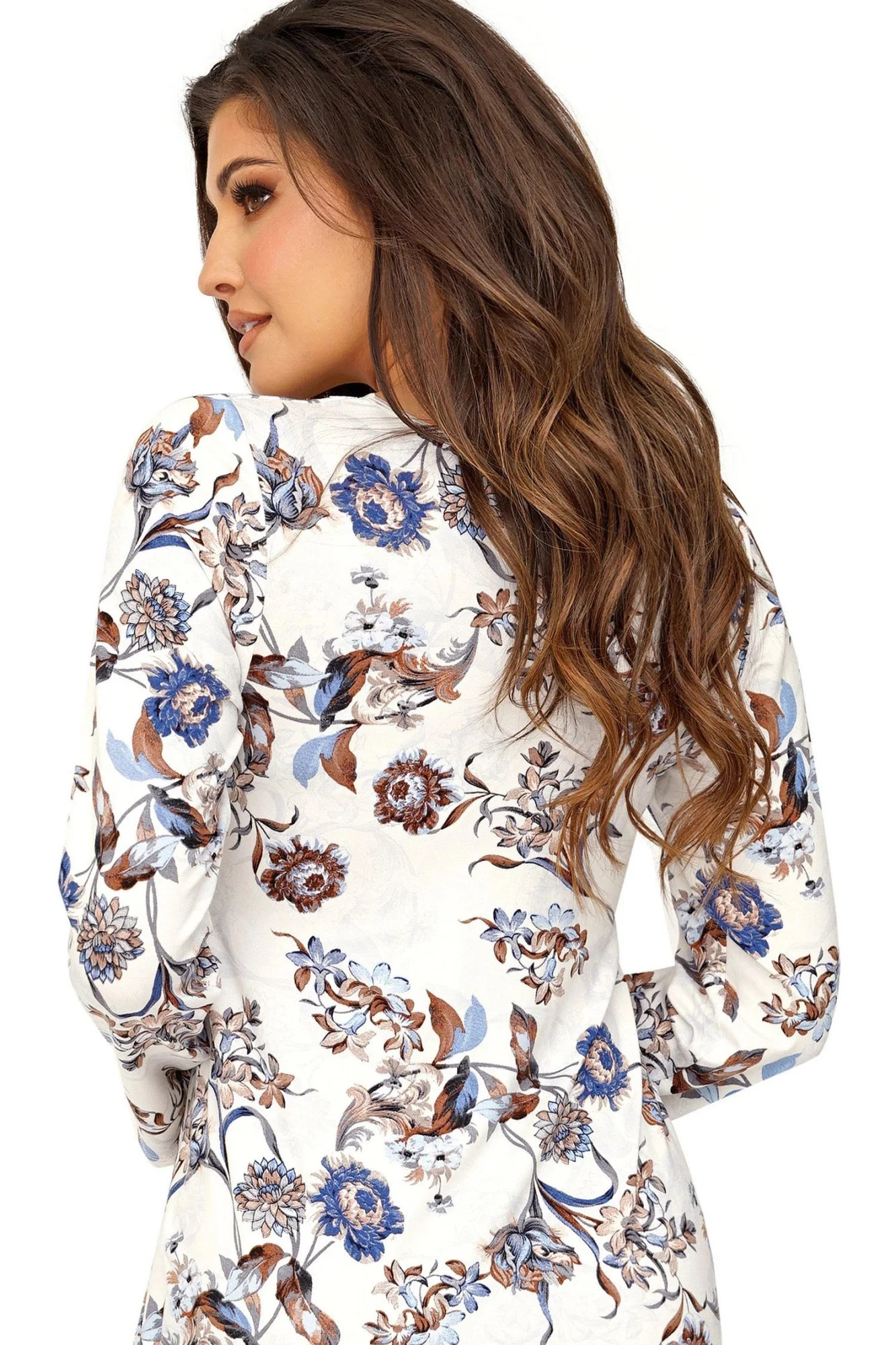 Dámská noční košilka Naomi Donna - krémová barva - z vysoce jakostní viskózy - s dlouhými rukávy - výstřih ve tvaru V zdobený krajkou - s květinovým vzorem - spodní lem zakončený volánkemMateriálové složení: 95% viskóza + 5% elastan