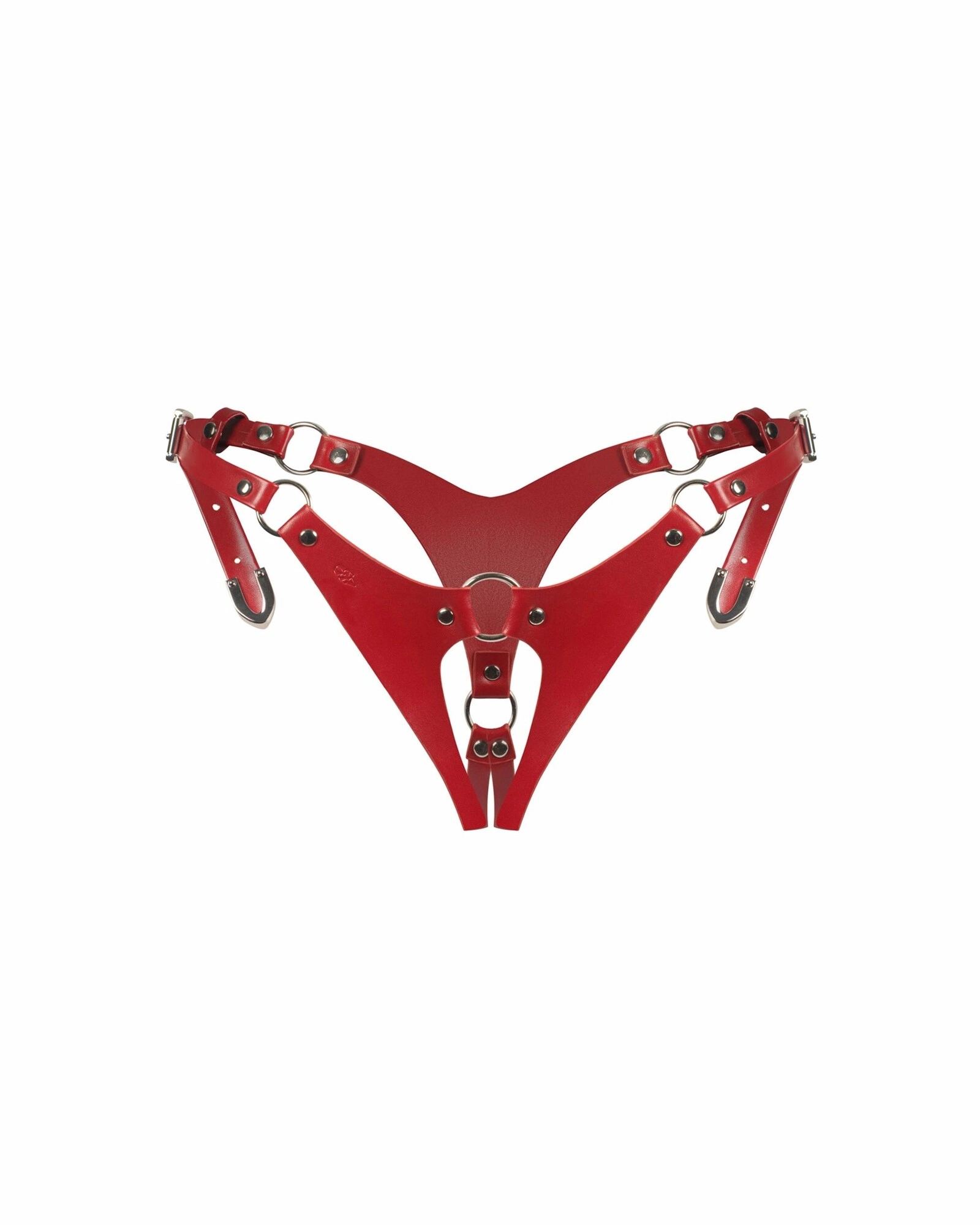 Minimalismus a odvážnost v prémiové podobě. Tanga Inferro bez rozkroku zdůrazňují přednosti těla a odhalují to, co je nejvíce smyslné. Design červených pásků a stříbrných kroužků leží na těle jako erotické šperky a vede pohled přesně tam, kam chcete.