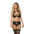 Linii dekoltu zdobí pásky. V horní části modelu je krajková aplikace, kterou je možné spolu s ramínky odepnout. Podprsenka je doplněná také hladkými ramínky.