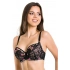 Měkká dámská podprsenka, která je vyrobená z černého tylu.