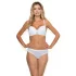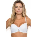 Košíčky s kosticemi jsou doplněné push-up vycpávkami. V místě spojení košíčků je saténová mašlička. Stabilní obvod je zpevněný bočními kosticemi. Ramínka je možné nastavit i odepnout.