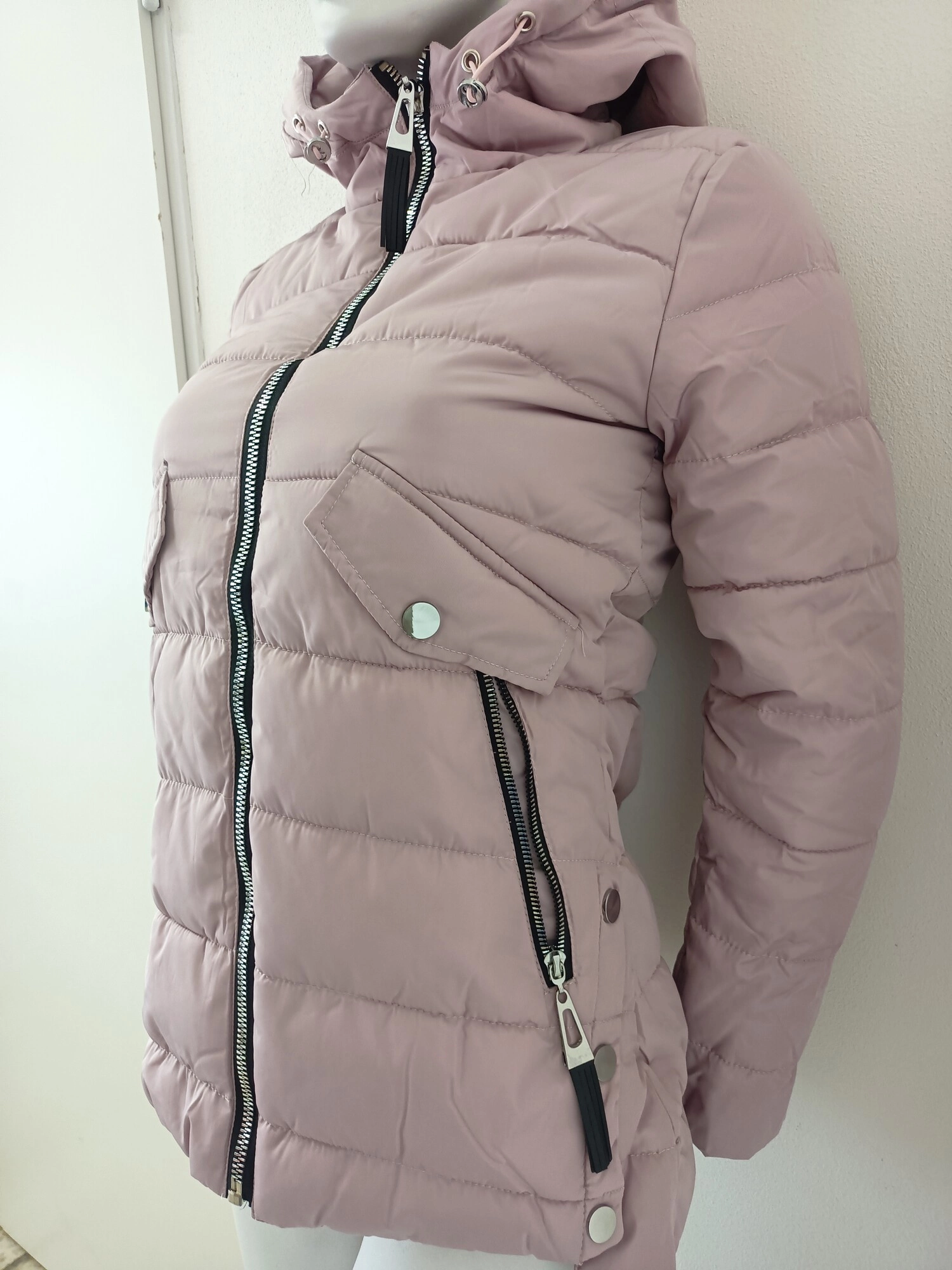 Dámská prošívaná zimní bunda střední délky, s neodepínací kapucí.