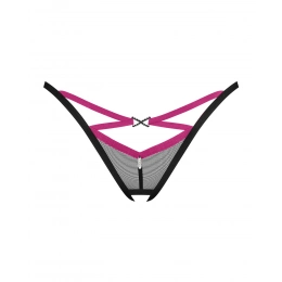 Minimalistický design, který poskytuje maximální emoce! Klasické tanga dokonale zdůrazní tvar Vašeho zadečku. Otevřený rozkrok je zárukou smyslných chvil. Jemná černá látka se jemně přizpůsobí tělu a zdůrazní jeho krásu. Fialové ramínka a stříbrný přívěsek zdobený černými zirkony dodávají další šmrnc. Splňte si své fantazie s prádlem Novenes a cítíte se smyslně v každé situaci!