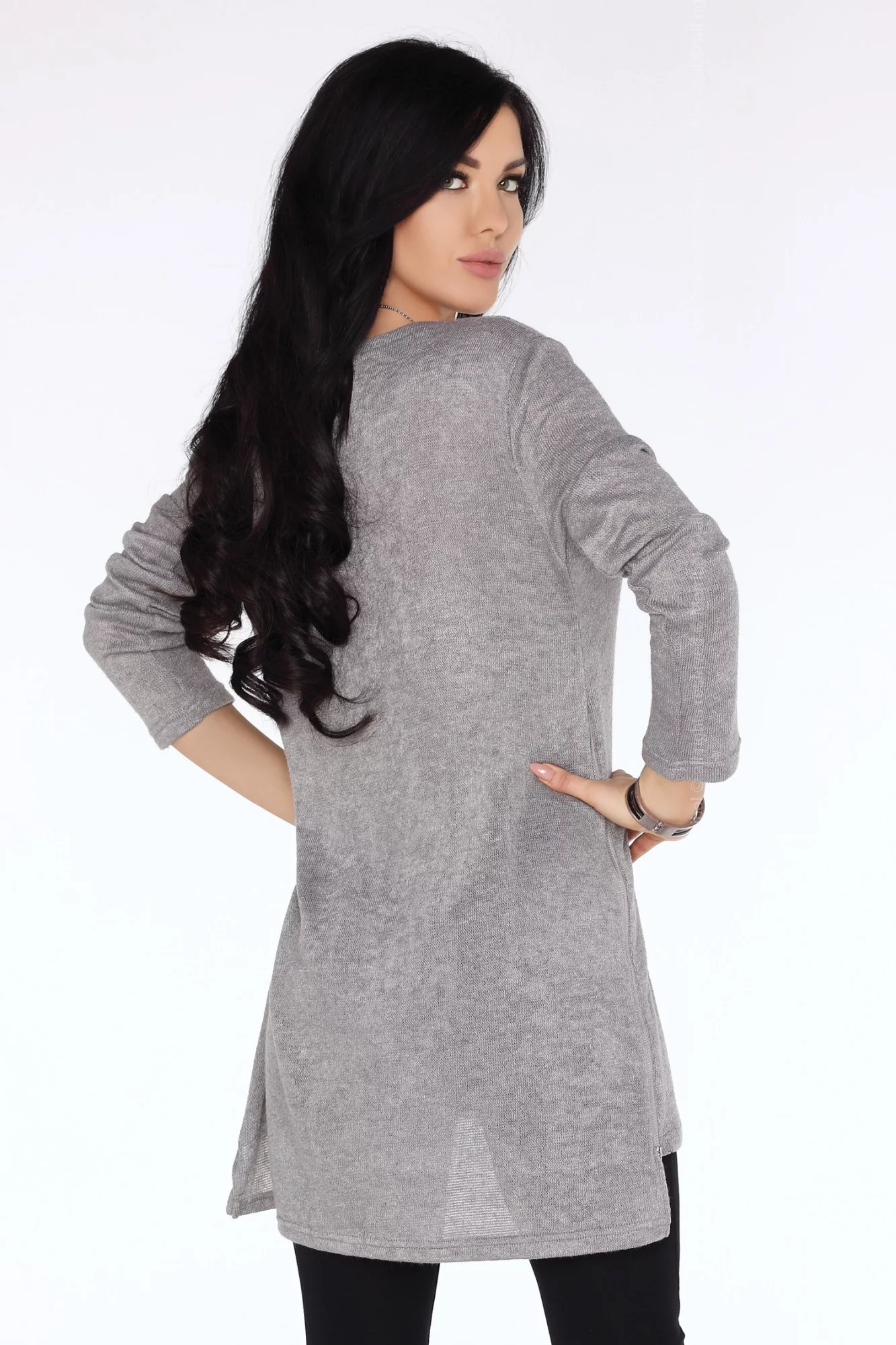 Pletená tunika s rozparky po bocích, délku rozparku lze nastavit díky všitým zipům.
