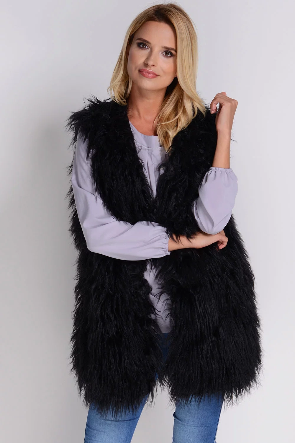 Velmi teplá vesta, která nesmí chybět ve vašem šatníku. Budete se v ní cítit módně a vkusně. Ušitá je z umělé kožešiny s dlouhým vlasem. Výstřih je do V. Vpředu se zapíná na háčky. Vesta zajišťuje dokonalý vzhled a dokonalé pohodlí.