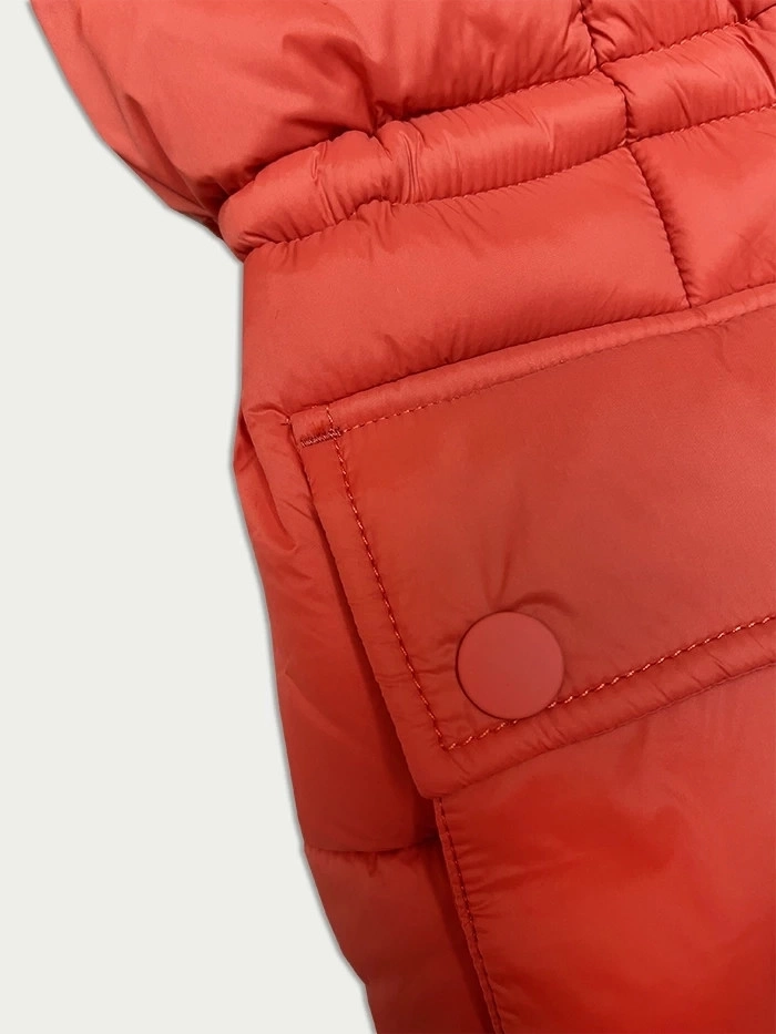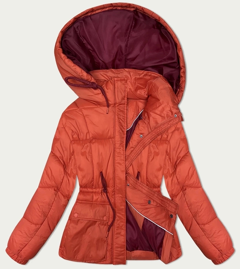 Bunda je zateplená syntetickou péřovou výplní, má dvě kapsy a jednu vnitřní kapsu a zapíná se zipem a panelem s patentkami. Model má stojáček a kapuci, kterou je možné odepnout. Rukávy jsou olemované gumami. V pase a na spodním okraji modelu jsou stahující šňůrky. Bunda má délku k bokům.