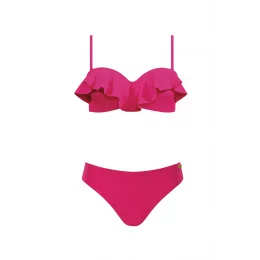 Dámské dvojdílné plavky značky Self. Vrchní díl je vyztužený kosticí spolu s nastavitelnými ramínky. Ozdobený je volánkem.