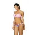 Podprsenka má vytvarované košíčky typu bardotka. Mezi košíčky je jemné nařasení a ozdobná přeložená šňůrka. Ramínka je možné nastavit i odepnout. Podprsenka se vzadu zapíná pohodlným klipem. Kalhotky typu brazilky se na bocích zavazují. Zadní díl kalhotek je ušitý ze dvojité látky. Kalhotky zdobí květovaný vzor.