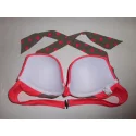 Dvoudílné dámské plavky s vyztuženou podprsenkou, široká ramínka na vázání za krk, zapínání na zádech.