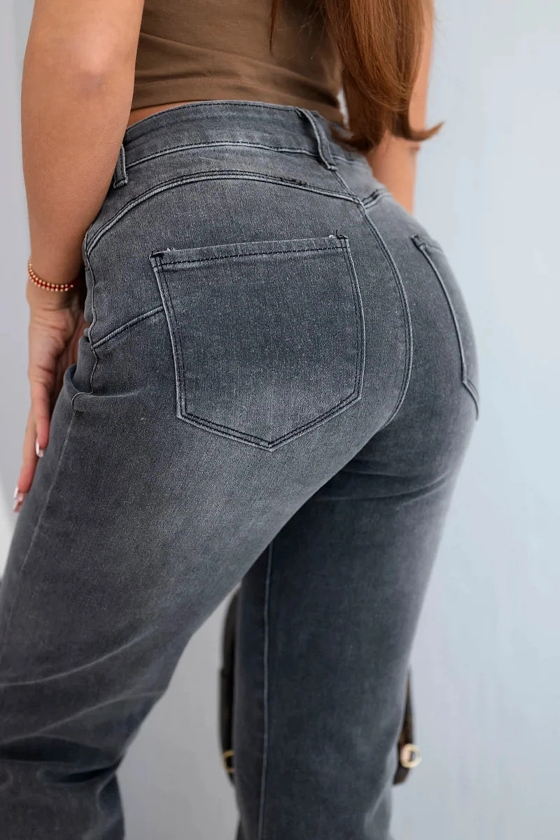 Dámské jeansové kalhoty CZP8170 grafitové - Kesi S