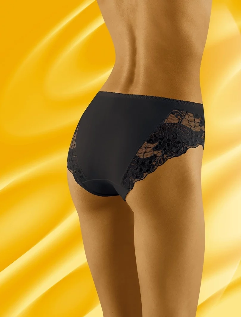 Kalhotky jsou bohatě ozdobené krajkou. Model zdobí originální vzor pavích per. Tělo je díky tomuto vzoru pěkně ozdobené a vyniká a zároveň je také v pohodlí.
