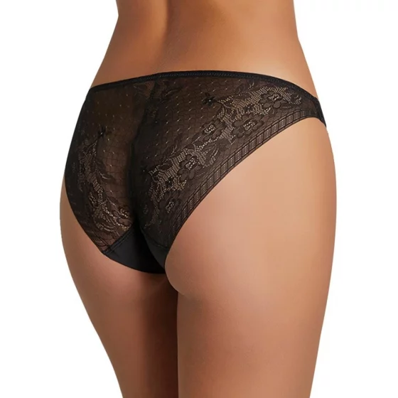 Dámské laserově řezané kalhotky španělské značky Ysabela Mora klasického střihu. V přední části jsou zcela hladké a v zadní části jsou průsvitné, krajkové. Obvod i okraje nohaviček jsou laserově střiženy a nebudou se nevzhledně zařezávat a rýsovat pod přilehlým oblečením. Do vnitřního dílu je zpracován bavlněný klínek pro pohodlné nošení. Materiálové složení: 90% polyamid, 10% elastan.
