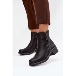 Dámské boty z eko kůže jsou praktickou a stylovou obuví na chladnější dny. Umístěny na stabilním podpatku typu kostka, zajišťují pohodlí a elegantní vzhled. Vybaveny dvojitým zipem, usnadňují oblékání a sundávání. Vnitřek vyhřátý obuvní přikrývkou zaručuje teplo a komfort během nošení. Při výběru velikosti se řiďte tabulkou velikostí. Při výběru velikosti se řiďte tabulkou velikostí.