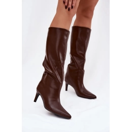 Dámské kozačky s vysokým shaftem sahajícím za koleno jsou elegantní a stylovou volbou na podzimně-zimní sezónu. Snadno se obouvají a jsou na tenkém podpatku, což nejenže dodává postavě lehkost, ale také jemně prodlužuje nohy a zvýrazňuje ženské tvary. Špičaté nosy přidávají rafinovaný akcent a kvalitní materiál zajišťuje odolnost a pohodlí. Tyto kozačky se skvěle hodí jak ke elegantním šatům a sukním, tak i k volnějších módním outfitem, čímž se stanou výrazným doplňkem zimního stylu. Při výběru velikosti prosíme podle tabulky velikostí. Při výběru velikosti se řiďte tabulkou velikostí.