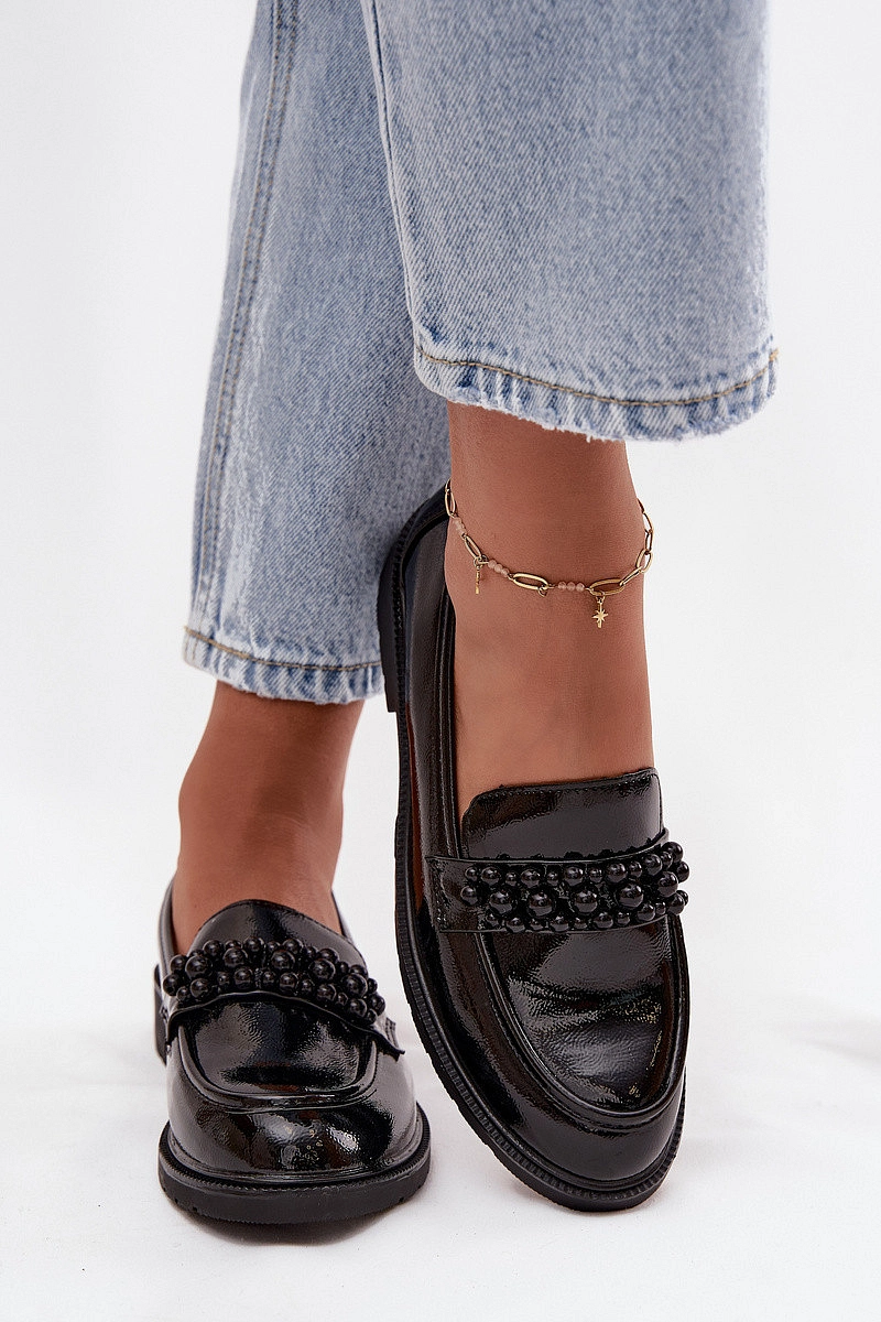 Dámské mokasíny značky S.Barski jsou stylovou volbou, která kombinuje eleganci s pohodlím. Vyrobené z lakované eko kůže působí elegantně a přitahují pozornost jemným leskem. Na přední straně je pás zdobený dekorativními korálky, který dodává originální vzhled. Zaoblené špičky zdůrazňují klasický vzhled a přírodní kožená vložka zajišťuje pohodlí po celý den. Jedná se o univerzální model, který skvěle poslouží jak v každodenním stylu, tak v elegantních sestavách. Při výběru velikosti se řiďte tabulkou velikostí.