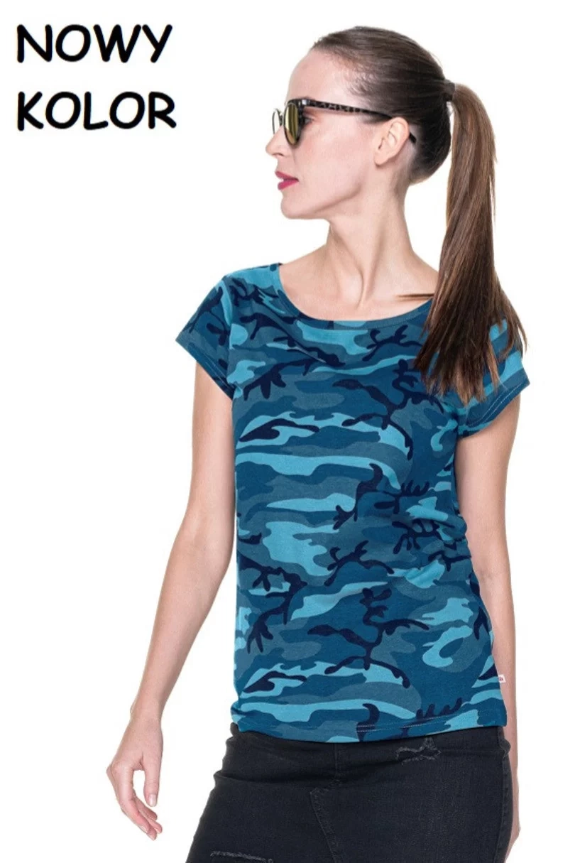Dámské tričko ušité z hladkého materiálu single jersey s tištěným maskáčovým vzorem. Tričko má dvojté švy a pevné lem. Gramáž: 170g/m2.