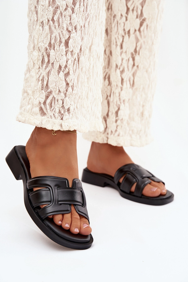 Dámské nazouváky vyrobené z ekologické kůže jsou klasickou a stylovou volbou na každý den. Plochý podpatek zajišťuje pohodlí při nošení a volnost při chůzi, díky čemuž je model ideální pro každodenní použití. Jednoduchý, nadčasový střih umožňuje snadné sladění s různými styly – jak s letními šaty, tak s casual outfity. To je ideální volba pro ženy, které ocení pohodlí a univerzální styl. Při výběru velikosti prosíme řídit se tabulkou velikostí. Při výběru velikosti se řiďte tabulkou velikostí.