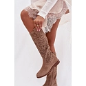 Otevřená dámská kozačky ve stylu boho jsou výjimečnou volbou pro ženy, které ocení svobodu a módní vzhled. Jemné výřezy na svršku jim dodávají lehkost a originální charakter, zdůrazňující jedinečný styl modelu. Plochý podpatek zajišťuje pohodlí při každodenním nošení a praktické zapínání na zip usnadňuje rychlé oblékání a sundávání obuvi. Tyto kozačky se skvěle hodí k šatům, sukním a přiléhavým kalhotám, tvořící stylové sety inspirované boho atmosférou. Při výběru velikosti se řiďte tabulkou velikostí.