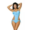 Vrchní a spodní část plavek jsou spojené širším páskem. Košíčky modelu jsou vytvarované. Mezi košíčky je pěkná ozdobná mašlička. Dekolt je olemovaný stylovým volánkem. Model má svislé boční kostice. Ramínka je možné nastavit i odepnout. Vzadu se model zapíná pohodlným klipem.