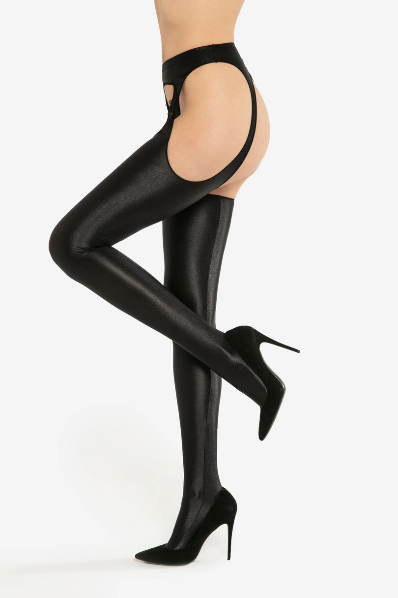 Punčocháče jsou vyrobené z pružné tkaniny se saténovým leskem.