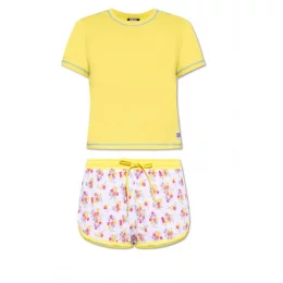 Tato souprava je vyrobena z bavlny a obsahuje top s žebrovaným výstřihem a krátkými rukávy. Také šortky s elastickým pasem, šňůrkami a květinovým motivemMateriál: 100% bavlna