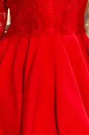 Originální dámské šaty 210-6 Numoco - asymetrický střih - tříčtvrteční rukávy - hluboký výstřih lemovaný krajkou - zadní strana sukně je prodloužená
