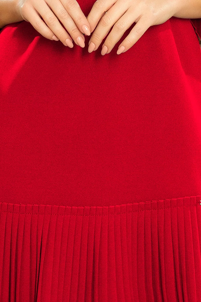 Dámské šaty 228-3 Numoco - jemné řasení na rukávech a sukni - kulatý výstřih - 7/8 rukávy - pohodlný střih