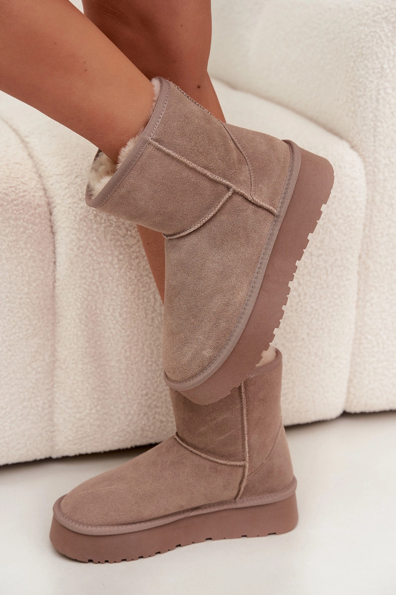 Dámské sněhule vyrobené z přírodního semiše. Vnitřek vyplněný měkkým kožíškem zaručuje pohodlí a teplo i v mrazivých dnech. Umístěny na platformě z gumového materiálu, účinně izolují od chladného povrchu a zajišťují pohodlí při každodenním nošení. Ideální volba na zimní výlety – praktické, módní a pohodlné. Při výběru velikosti se řiďte tabulkou velikostí. Při výběru velikosti se řiďte tabulkou velikostí.