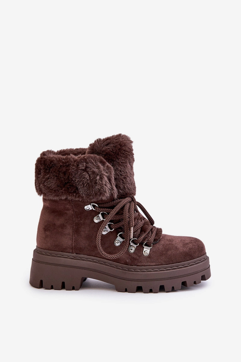 Dámské boty vyrobené z eko semiše jsou skvělou volbou na chladné dny. Šněrování umožňuje přesné přizpůsobení boty noze, což zajišťuje pohodlí při každodenním nošení. Vnitřek zateplený obuvnickou vlnou zaručuje teplo a komfort i v mrazivých dnech. Horní část svršku je ozdobena měkkým kožíškem, který nejen přidává styl, ale také chrání před zimou. Tyto boty spojují funkčnost a módní vzhled, ideálně se hodí jak do městských stylizací, tak na zimní procházky. Při výběru velikosti se řiďte tabulkou velikostí.
