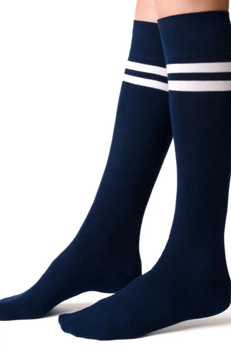 Bavlněné dámské podkolenky se vzorem, pruhy na kraji podkolenek