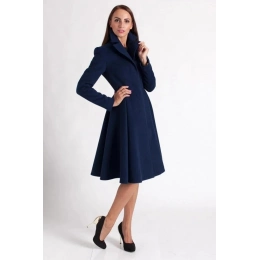 V pasu je kabát prošívaný, od pasu se postupně rozšiřuje