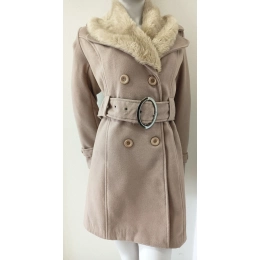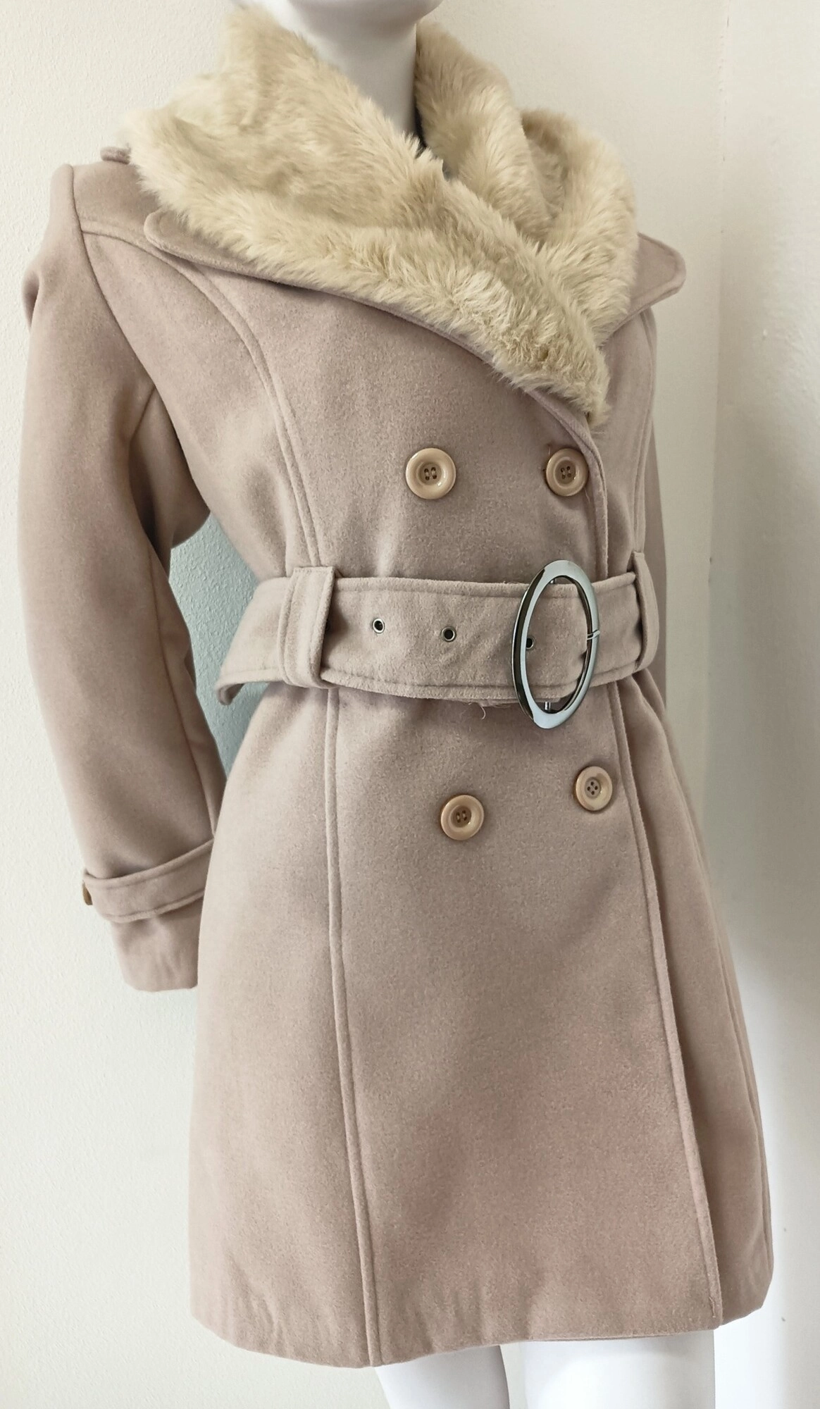 Dámský luxusní kabát se šálovým límcem a umělou kožešinou.
