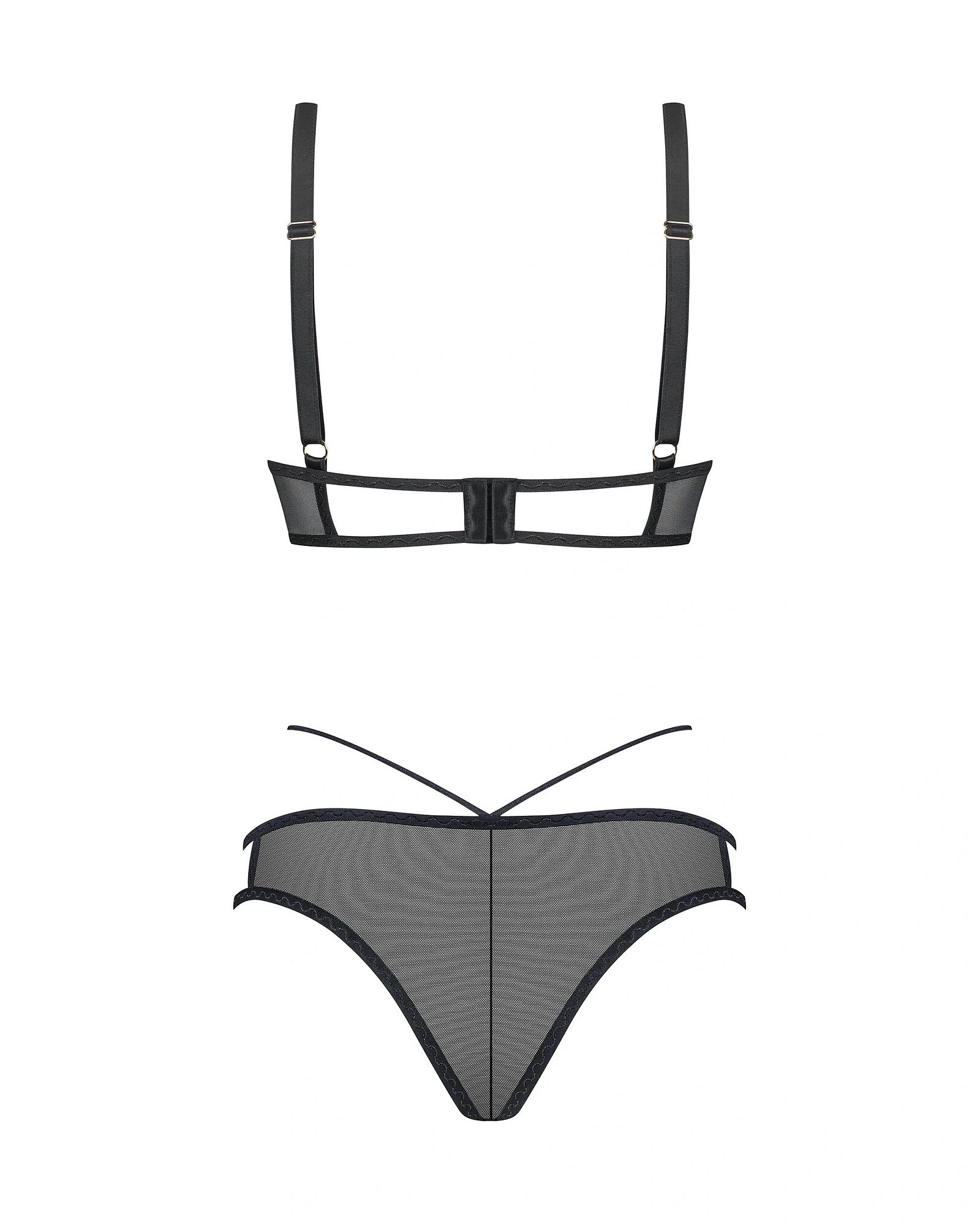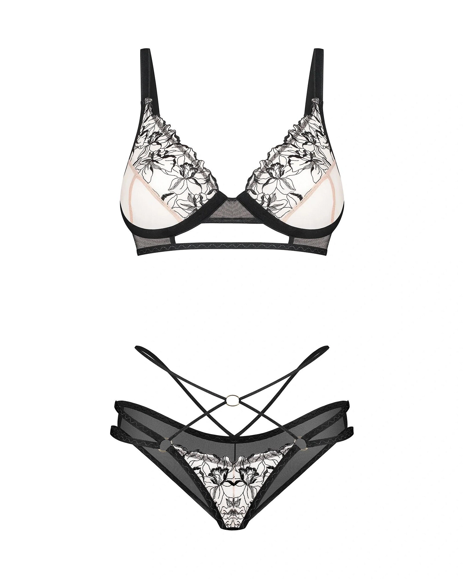 Sada se skládá z podprsenky a kalhotek s jedinečným designem. Pozornost upoutá její originální střih zdobený botanickým vzorem. Tato zajímavá kombinace vysoce kvalitních materiálů podtrhne krásu každé ženy.