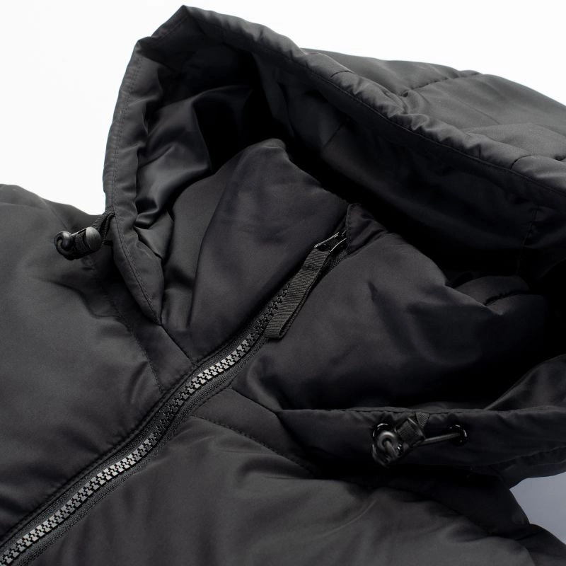 Hrubší bunda s kapucí Bunda je prošívaná, je zateplená syntetickou péřovou výplní, má dvě kapsy a z