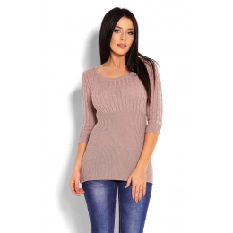 Jemně pletený svetr s vrškem z copánkového úpletu.